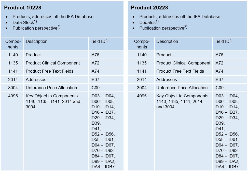Both products contain all Main Objects of the IFA Database, i.e. articles and addresses, as well as the associated Key Objects.